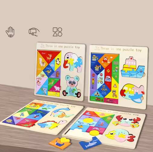 أحجية بانوراما خشبية للأطفال ، لعبة تعليمية ، إبداعية ، شكل هندسي ، إدراك اللون ، كتل بناء خشبية ، هدايا ، 3 في 1