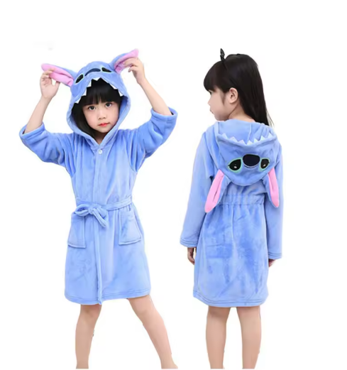 غرزة البشكير الاطفال فتاة ملابس خاصة 3 4 5 6 7 سنوات الأزرق الفانيلا لطيف الشتاء بيجامات أطفال طفل الفتيان منامة مقنعين رداء