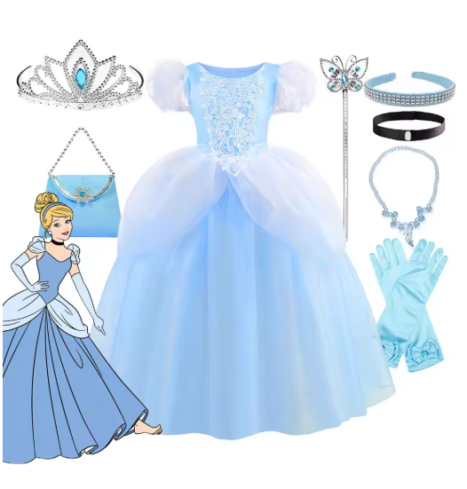 فستان ديزني كلاسيكي سندريلا الفاخر من الدانتيل لحفلات أعياد الميلاد ولعب الأدوار الأميرة التظاهرية الخيالية غريس الكرة ثوب للطفل
