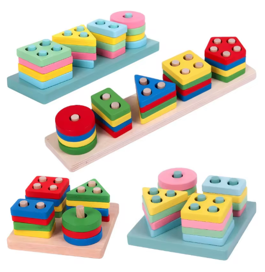 لعبة مونتيسوري اللبنات الخشبية التعلم المبكر ألعاب تعليمية اللون الشكل مباراة الاطفال لغز لعب للأطفال بنين بنات