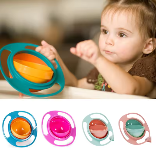 وعاء الدوران العالمي للأطفال التوازن الدوار الجدة الدوران 360 تدوير مقاوم للانسكاب أطباق التغذية تدريب الطفل لعبة التوازن الدوارة