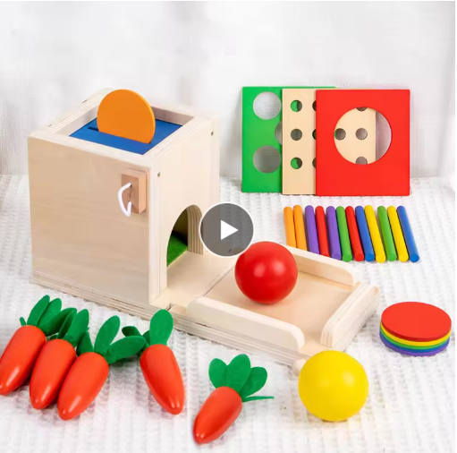 4 في 1 مجموعة اللعب كائن مونتيسوري صندوق الدوام عملة الجزرة الحصاد لعبة شكل خشبي فارز تعلم ألعاب تعليمية للأطفال