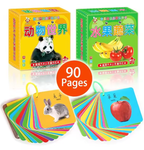 90 صفحة من أرقام الفواكه الحيوانية، كتاب التنوير للتعليم المبكر المعرفي لبطاقات محو الأمية للأطفال