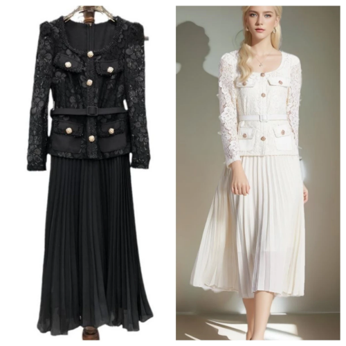 فستان أبيض بتصميم مجوف من Horetong للنساء بياقة على شكل حرف V وأكمام طويلة وخصر عالٍ للحفلات فستان مناسبات أنيق للخريف