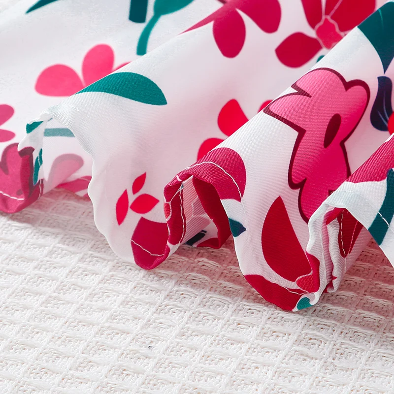 • تصميم زهور رائع :يتميز هذا الفستان بطبعة زهور ساحرة ، مثالية للفتيات الصغيرات الذين يحبون لمسة الطبيعة في ملابسهم.
