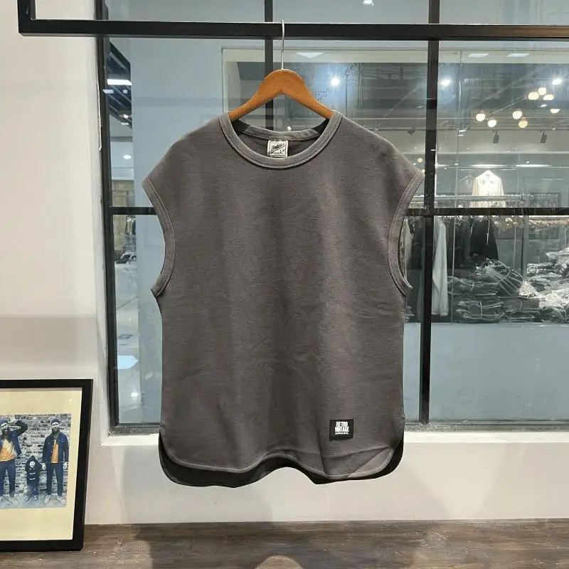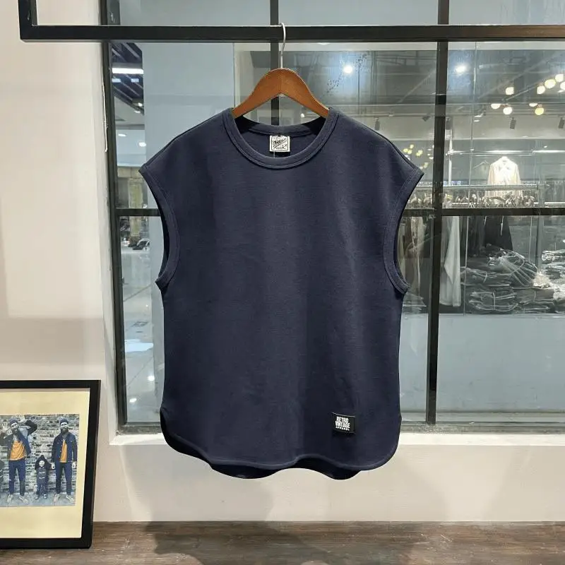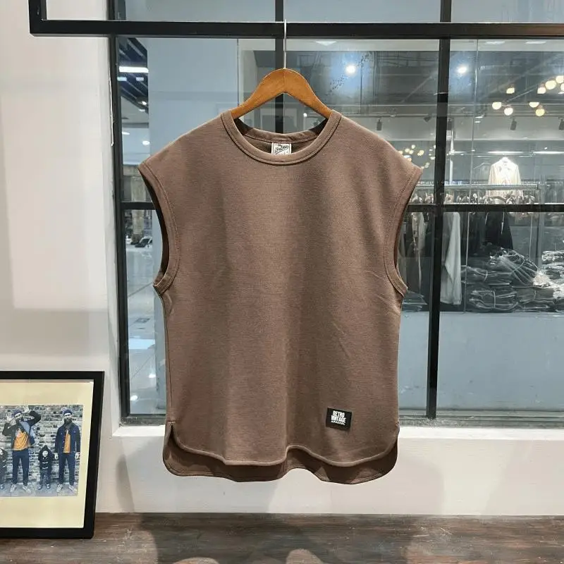 سترة رياضية فضفاضة صيفية عصرية جديدة للياقة البدنية بدون أكمام للتدريب غير رسمي للرجال بلون سادة ورقبة دائرية