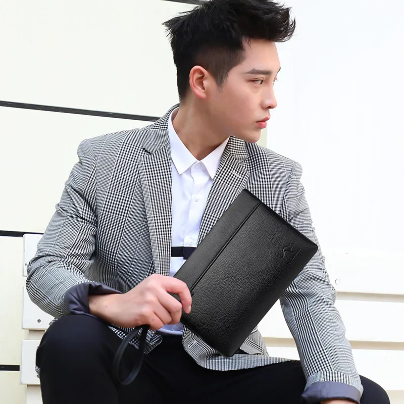 حقيبة يد رجالية للأعمال ذات سعة كبيرة ومشبك جلدي ناعم الوجه كلاسيكي كاجوال أنيق حقيبة محمولة بسحاب حقيبة محفظة