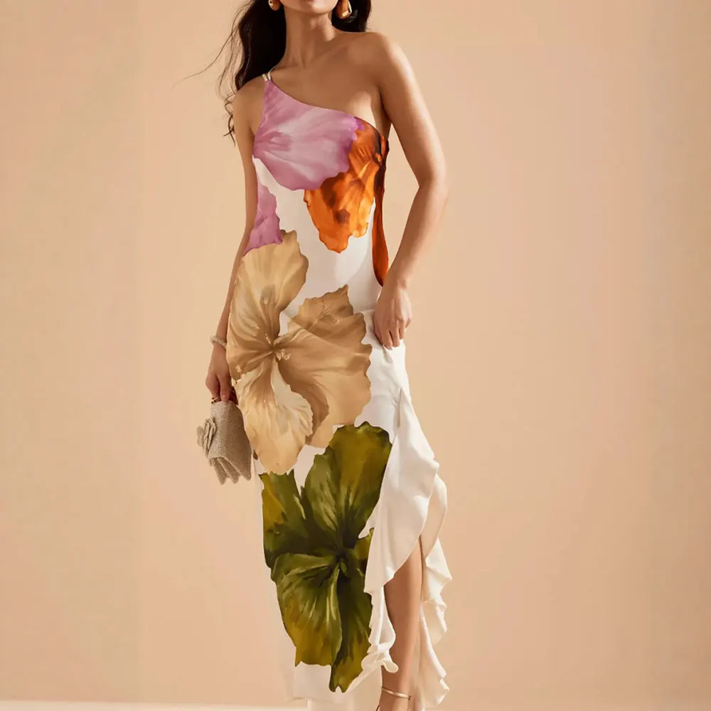 فساتين سهرة طويلة للسيدات من Rafiah صيفية أنيقة ولائقة بدون أكمام بكتف واحد