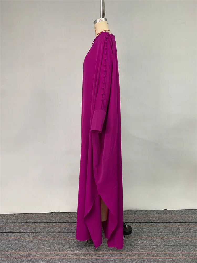 فستان Uoozee نسائي عتيق بلون سادة 2025 ربيع جديد كم طويل كبير الحجم بأزرار أنيقة فساتين ماكسي للولائم المسائية