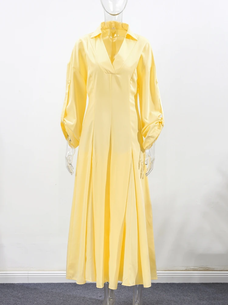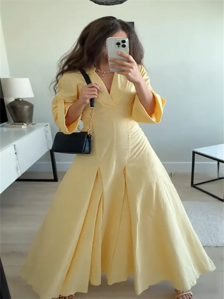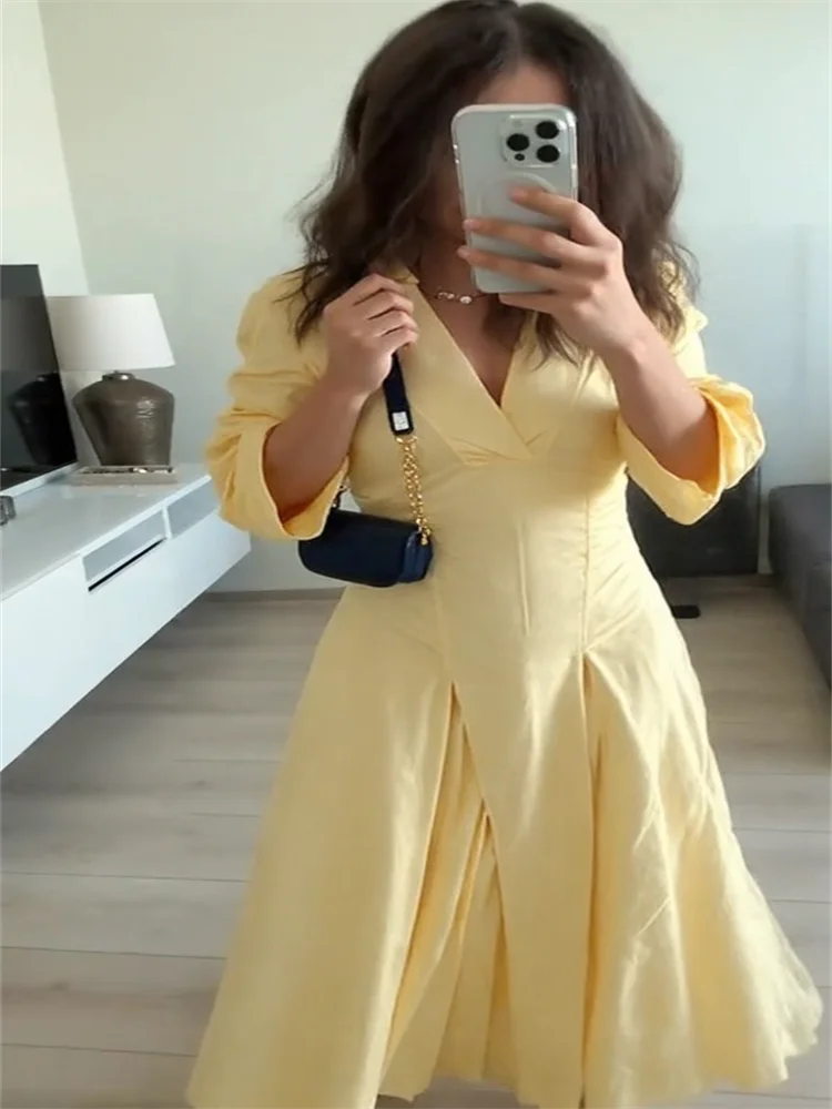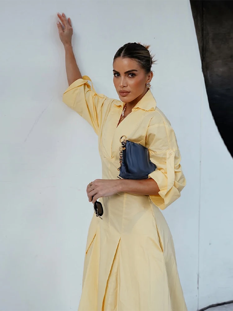قمصان نسائية أنيقة للمكتب فستان طية صدر السترة الخصر Cinching نصف كم مطوي رداء نسائي موضة صيف 2025 فساتين للسيدات