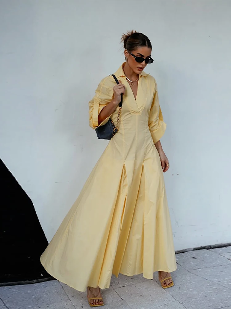 �� صورة ظلية أنيقة: يتميز بتنورة جذابة على شكل حرف V ورقبة على شكل حرف A، مما يخلق مظهرًا رشيقًا وأنثويًا مناسبًا لمختلف المناسبات.